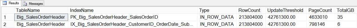 Big_SalesOrderHeader CIX and NCI Information Published July 7, 2014 at 1222 × 99 in Another Way to View Automatic Updates to Statistics ← Previous Next → Big_SalesOrderHeader CIX and NCI Information Big_SalesOrderHeader CIX and NCI Information